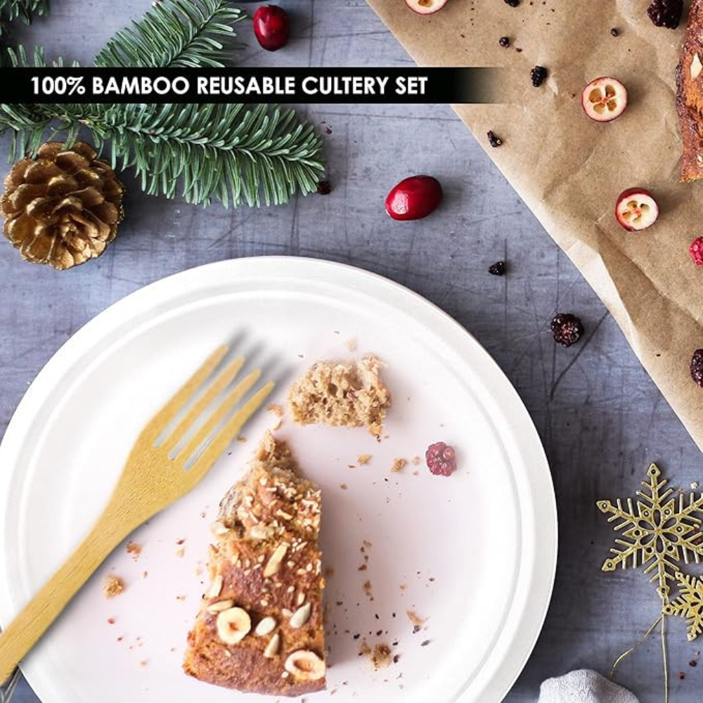 Eco-Friendly & Compostable: Made from natural bamboo, offering a reusable and biodegradable alternative to plastic cutlery.